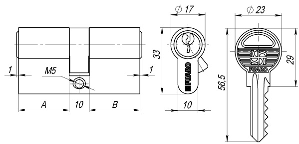 Цилиндровый механизм Fuaro 100 ZA предназначен для установки в корпуса врезных цилиндровых замков для всех типов дверей. Вариант исполнения: ключ-ключ. Тип ключа: «английский». Материал изготовления цилиндра: ZAMAK. Количество пинов: 6. Секретность более 5 000 комбинаций. Работоспособность более 100 000 циклов. Размер: 70 мм. Цвет: хром. Комплектация: 5 стальных ключей, крепежный винт 50 мм.