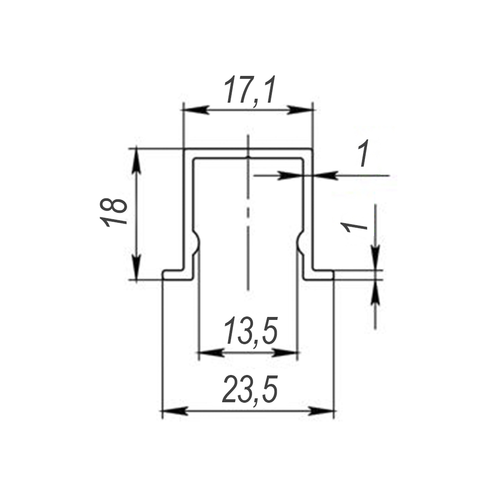 Нижняя врезная направляющая из алюминия для раздвижной системы.