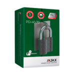 Навесной замок Ajax серии PD-400 предназначен для запирания внешних и внутренних дверей, оснащенных проушинами. Алюминиевый корпус с антикоррозийным покрытием, стальная подпружиненная дужка, 3 дисковых ключа в комплекте. Упаковка — коробка. Гарантия 12 месяцев.